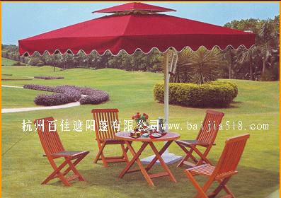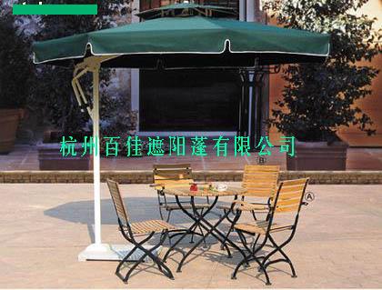 杭州顾佳休闲用品有限公司专业生产边柱伞,此产品伞架为钢铁结构,白色烤漆,底座为