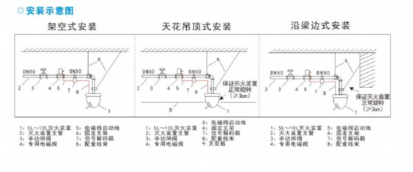 灭火装置(喷射型)将红外传感技术、信号处理技术、通讯控制技术、计算机技术和机械传动技术有机地结合在一起,能全天候自动监测保护范围内的火灾。一旦发生火灾,灭火装置立即启动,对火源进行水平方向和垂直方向的智能扫描,确定火源的两个方位后,中央控制器发出指令,发出火警信号,同时启动