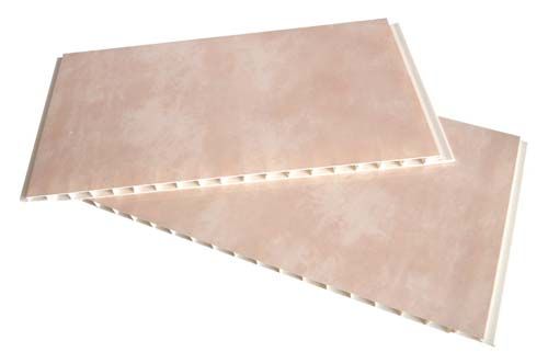 聚氯乙烯树脂为基料,加入一定量抗老化剂、改性剂等助剂,经混炼、压延、真空吸塑等工艺而制成的。 这种PVC扣板吊顶特别适用于厨房、卫生间的吊顶装饰,具有质量轻、防潮湿、隔热保温、不易燃烧、不吸尘、易清洁、可涂饰、易安装、价格低等优点。