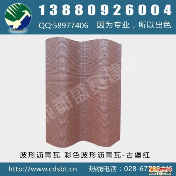 是由植物纤维在高温高压下浸渍沥青而成,其专利的胎基一次压制及热固树脂浸色技术,保证了瓦材的紧密厚重,颜色持久,防水性能优异;耐候防腐、抗风抗雹;彩色波形沥青瓦具有沥青的柔性防水、抗穿刺等特点;可采用搭接、钉钉的方式固定依然不影响其防水效果。其波形截面为瓦下带来了通风空间,可以持续将屋面热气和湿气带走,保持屋面系统干燥。彩色波形沥青瓦10个波/张及38mm的波高设计,展现了*佳美学外观;高达3Mm的平均厚度和6.4kg/张(3.4kg/平米)的平均重量,确保了长期使用可靠性,由厂家提供15年质量保证。