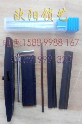 螺丝眼,这样就变成任意换头,插入正槽这一头就是正槽工具,插入另一头就变味反槽工具,可以用螺丝固定,由原来只有一个正槽和一个反槽改变为有两个正槽两个反槽工具,这样经过改进,工具的耐用率和使用率有多了一倍. 经过改进把手,使工具受力更均匀,工具头经过淬火热处理,硬度更高,适合开启各种口径平口AB咔吧锁,工具配10根成品锡纸条