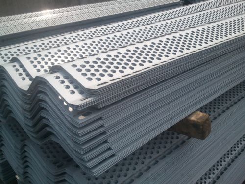 防风抑尘网是利用空气动力学原理,按照实施现场环境风洞实验结果加工成一定几何形状、开孔率和不同孔形组合挡风抑尘墙,使流通的空气(强风)从外通过墙体时,在墙体内侧形成上、下干扰的气流以达到外侧强风,内侧弱风,外侧小风,内侧无风的效果,从而防止粉尘的飞扬。