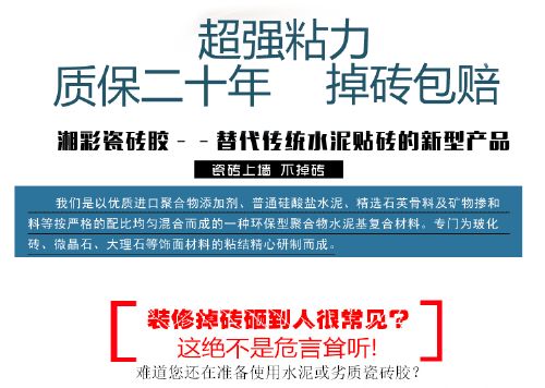 地砖等装饰材料,广泛适用于内外墙面、地面、浴室、厨房等建筑的饰面装饰场所。是现代装潢的新型材料,替代了传统水泥黄沙,胶粘结力是水泥