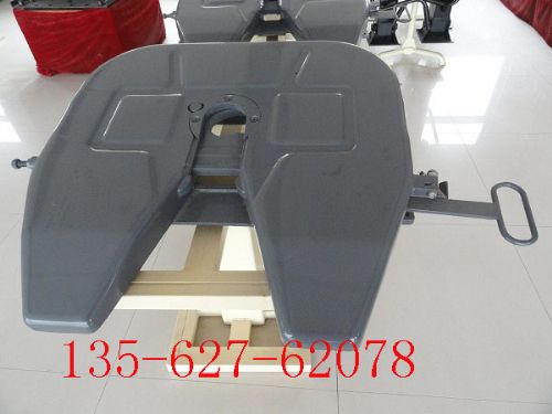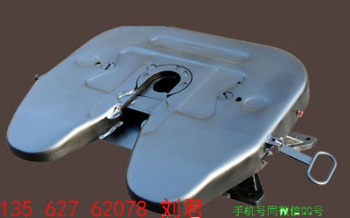 半挂车的牵拉件,主要由座盖板、鞍座底座、锁紧机构组成。其座盖板两个尾部采用大圆弧形状,中部有一蝴蝶形凹面,将平面分成5块大小相近的部分