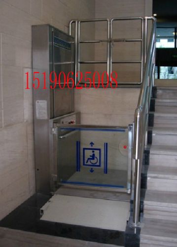 旁,安装了无障碍升降机。无障碍升降机可容纳轮椅车出入,残疾人或行动不便者只需按一下两端的求助按钮,值班人员就会立刻开启自动升降机。