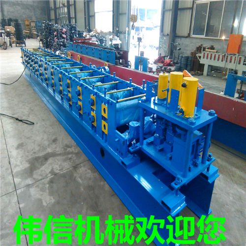 檩条成品的单卷成型机组。该机主要由被动装料架、整平装置、冲孔装置、成型后堵截装 置、