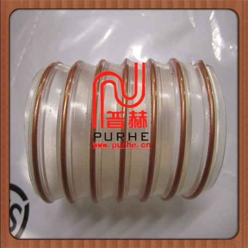 特性:带镀铜色包塑钢丝螺旋加强筋。内壁平滑, 以保证物料在管内流动顺畅. 和传统的橡胶