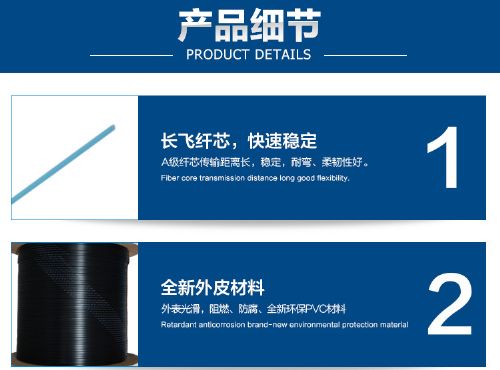 是将光通信单元处于中心,两侧放置两根平行非金属加强元件(FRP)一共为2根钢丝,***后,挤制黑色或彩色低烟无卤护套成缆。