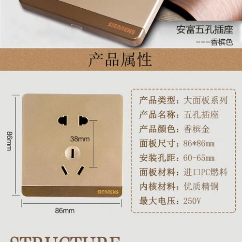 插座类型: 86型质保年限: 11年(含)-15年(含)插孔类型: 二三插额定电流: 10A颜色: 香槟金