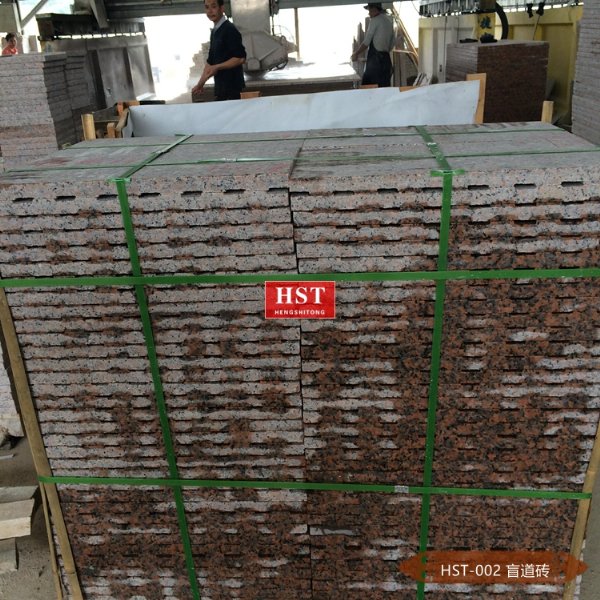 枫叶红石材盲人道的地面铺设,犹如黑暗的世界注入了一道强有力的光芒,世界不再黑暗,枫叶红