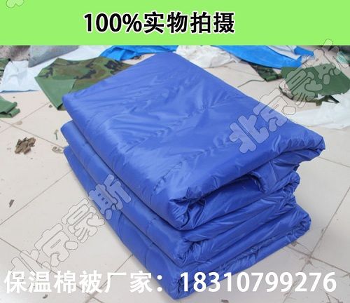 ★牛津布面料:两面采用牛津布,中间单层防寒毡,一层防水膜(可以加厚)。保温系数:室外-30摄氏度,室内6摄氏度(注:该温度为大庆43型棚,不生火,36小时不掀被时所测定)。行距为30厘米,针距为1.2厘米,尼龙线,牛津布具备抗老化,耐辐射的特点,使用寿命长达6-7年以上。