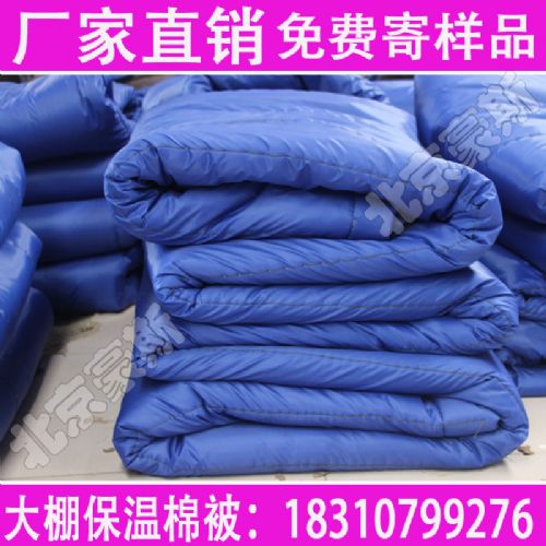 牛津布面料:产品两面采用牛津布,中间两层防寒毡,一层棉(可以加厚)。保温系数:室外-30摄氏度,室内6摄氏度(注:该温度为大庆43型棚,不生火,36小时不掀被时所测定)。行距为20厘米,针距为1.2厘米,尼龙线,牛津布具备抗老化,耐辐射的特点,防寒毡内加