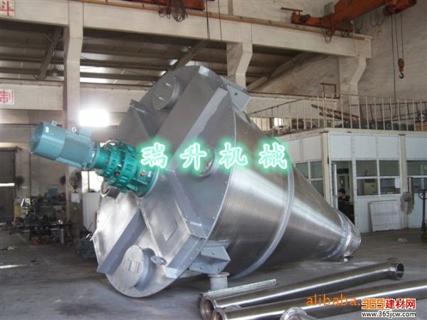 搅拌部件为两条不对称悬臂螺旋(化工行业机械设备大参考);长短各一,它们在绕自己的轴线转动(自转)的同时,还 环绕锥形容器的中心轴;借助转臂的回转在锥体壁面附近又作行星动(公转);该设备通过螺旋的公、自转使物料反复提升,在锥体内产生剪切、对流、扩散等复合运动,从而达到混合的目的。产品可根据要求设计外夹套(加热、冷却),喷雾器)