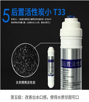 第五级: 后置活性炭滤芯,进一步的去除异味、余氯等,调节水质属性,改善口感、使水更加清甜可口。