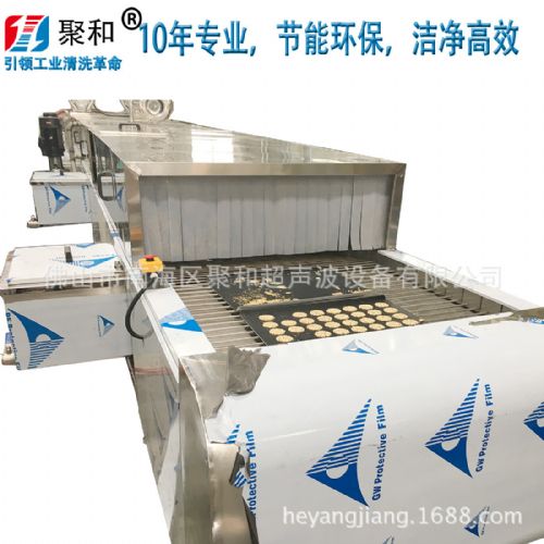 输送带—超声波浸泡清洗—高温喷淋清洗区—风切防串液—高温喷淋漂洗区—风切防串液—高温喷淋过水—风切去水—下料