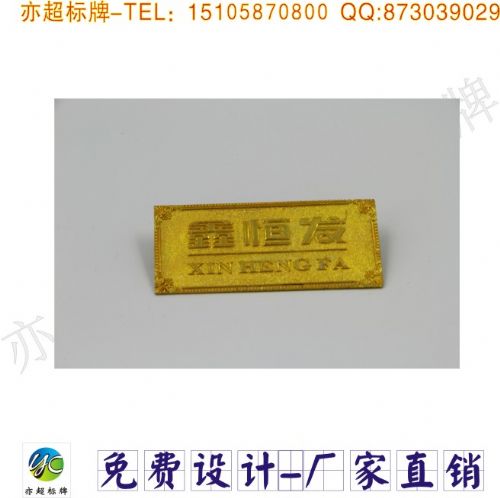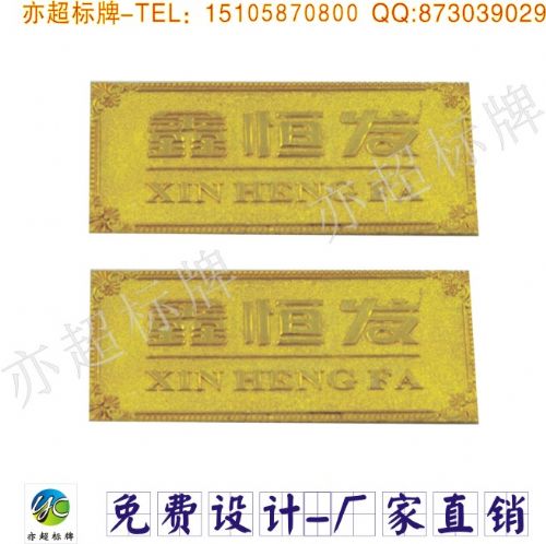 产品材料:铝/铜/铁/不锈钢等(给出一种材质) 产品厚度:0.5/0.7/0.8/1/1.5/2/3/5(标准厚度,略微误差不记,单位毫米mm) 产品制作工艺:平印:丝网印、文图是平的、腐蚀:烂底,图文是有凹凸的。 产品颜色:单色、多色或有图像 产品数量:相同版或不同版个数 产品生产时间:一般看数量工艺而定,少者6天,量大7-10天左右。急单请您说明,尽量配合。 关于发票:本厂可提供5%普通发票,需要发票的客户可以联系我们,每张发票需要对应的税金!! 运费:按重量计算。
