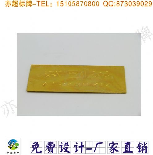 不锈钢 0.5mm、0.8mm、1mm、1.5mm 铜 0.5mm、0.8mm、1mm、1.5mm、2mm 数量:数量不限,如是定制的产品,不同的数量价格不一样。 工艺:不同的产品有不同的工艺。如果不知道工艺的,请一定要详细描述您的样品的样式,*好是发实物照片或寄样。如没有实样,也要找到类似的图片辅助说明。(注:有些工艺形状是异形的,一般都要开模具成型和落料,需模具费用。) 规格:多样化(可自定义) 颜色:价格跟颜色的多少有关系。 矢量文件:即后缀是CDR,AI格式的矢量文件。另外文字一定要转换成曲线,否则会造成字体变化或部分信息丢失。 【免费设计】凡确定需要定做标牌的顾客,本厂均可提供免费设计,专业的设计师免费为您在线服务,您的满意 ,是我们不懈的追求。