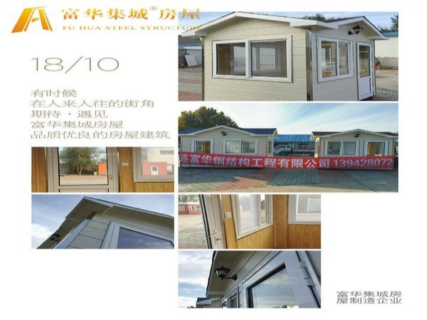 大连富华恒润实业有限公司是一家集成房屋制造企业,主要制造各式轻钢房屋、轻钢别墅、欧式可移动式房屋、欧式岗亭、景观房屋、景观亭、钢木房屋、小木屋搭建。承接全国轻钢房屋、木屋工程项目。富华集城品牌房屋使用的材料都是优质材料,经过我们精挑细选,负责任的施工工艺,使富华集城品牌品质房屋,整体品质高高在上,是其他企业不具备的优越条件。