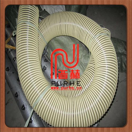 聚氨酯管壁,食品级,带防震型硬质PVC螺旋加强筋.内表面平滑,外表面有凸起螺纹.质轻、柔软、极其耐磨损耐扭曲,具有良好的机械性能且耐受大多数化学品。