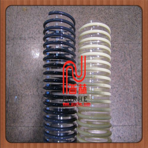 聚氨酯软管,带防震型硬质PVC螺旋塑筋加强,内表面完全平滑,外表面螺旋状花纹。具有良好的机械性能。非常轻且柔软。聚氨酯材料的特性使其具有比普通PVC管高5倍以上的抗磨损度和弯曲度。耐风化、耐大部分的化学品。