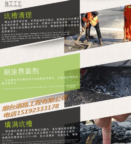 界面剂3、填满坑槽4、压实5、开发交通。再就是根据坑槽大小用多少料取多少料,不会造成浪费,不会阻碍交通。