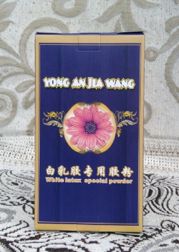 Properties: this product is a multi-polymer with strong moisture absorption, expands to transparent gel in water, and turns into viscous liquid whose viscosity is stable for a long time without delamination. Special glue powder for white latex is a new product developed as white latex characteristics.
