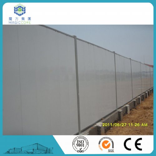 钢板厚度为0.326mm),该活动板房式围墙结构简单、安装方便、 成本低,是建筑、施工等临时围蔽设施的选择。随着当今社会建筑业的蓬勃发展, 施工地的围墙