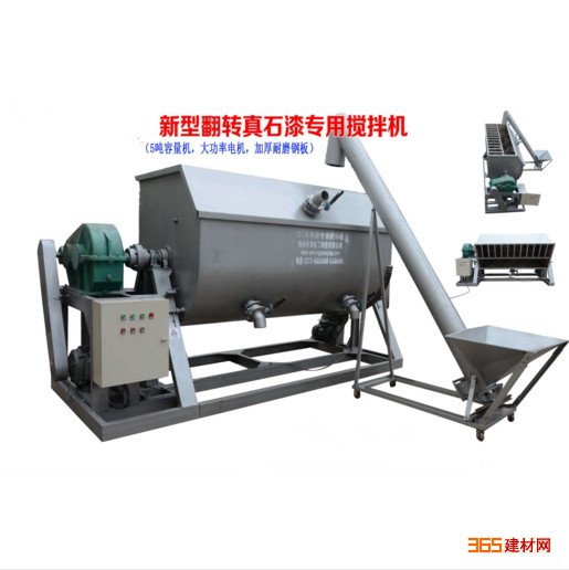 选择不同型号的真石漆搅拌机对真石漆色差有着不小的影响,原因是即使调色师傅水平很高也很难保证同一台真石漆搅拌机生产出的每一批真 石漆颜色保持一致,比 如客户订购同一颜色的5吨真石漆,如果用5吨型号的真石漆搅拌机一次性进行搅拌混合,很容易达到颜色一致;如果采用3吨型号的真石漆搅拌设备则需要生产2 个批次,这样的话前后两个批次出来的真石漆颜色会有比较大的差异,直接影响真石漆的产品质量。所以,大多数市场销量好的真石漆厂家往往购买多台不同型号的 真石漆搅拌机,比如1吨型的真石漆搅拌机、3吨、5吨、10吨、20吨等,以兼顾不同吨位需求的真石漆客户,小型号真石漆搅拌机采购的必要性在于采用过少 低于真石漆搅拌容量的机器进行生产也会影响其均匀度,比如用10吨型号的真石漆搅拌机搅拌3吨以下的真石漆也会导致混合不均匀。