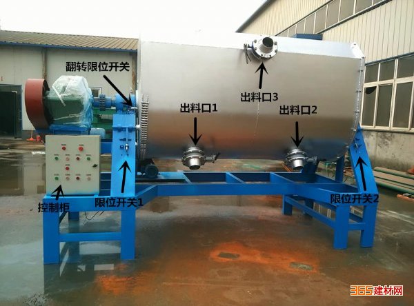 4、正反转搅拌功能;电动翻转功能:协助放料、清仓、冲洗,采用电磁传感和行程开关双重保障避免操作人员的操作不当造成翻转系统的损坏;复位功能。