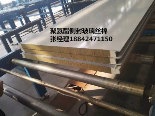 A,聚氨酯侧封玻璃丝棉复合板,属于一种预制的建筑用材,它有芯材,芯材两侧有非金属材料的左