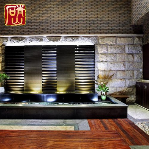 天然流水板文化石 水幕背景墙黑色流水石厂家