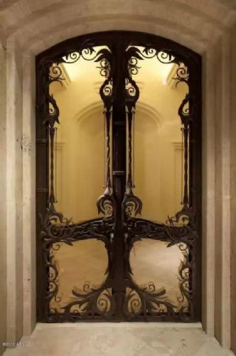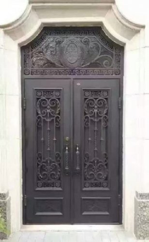 厂家直销铁艺进户门 锻打铁艺玻璃双开进户门