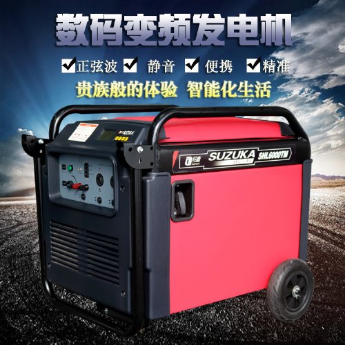 机组型号为SHL6000TM,机组采用数码变频技术设计,具有高效、节能、轻便、静音、电压稳定的优点。可以带一些精密仪器。之前给剧组使用,得到过用户的好评及肯定。使用方便,安全,也是一款豪华版高端小型汽油发