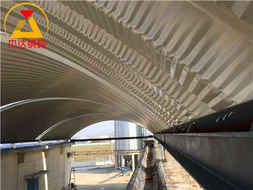 在国内出现的时间虽不常,但由于很多科研院所的热情投入以及企业的积极支持,研究工作进展很快,目前已有三家单位的研究成果通过国家鉴定,分别为清华大学两家和天津大学一家。按金属拱型波纹屋盖结构拱脚连接方式可分为铰接、固接支座两类。其常用的构造节点除支座节点(包括单跨、多跨)外,还包括单元板间连接、与山墙连接节点、拱脚防水防腐处理、屋面采光孔、