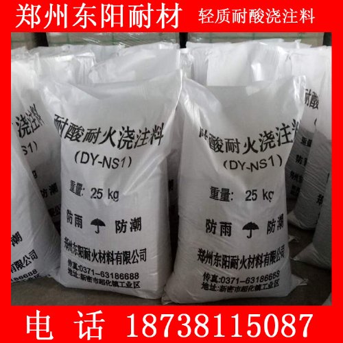 耐火浇注料近似,在耐酸性能方面主要考虑骨料与粉料的耐酸度,配制成耐酸浇注料后的耐酸度以及浸酸后浇注料强度变化等因素。