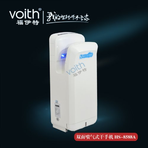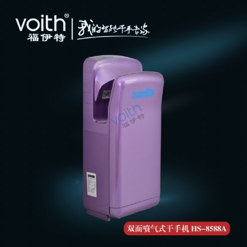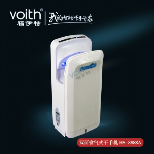 光触媒,去尘),使得空气净化率达到99%。两侧面开口设计,倾角15度设计,可以自然舒适将手放入,喷射高速气流可在7秒内迅速干手,由于无需购买和处理擦手纸,洗手间将会看不到乱丢的废纸,您的洗手间将更加清洁、卫生、高档、舒适并且大大减少不必要的用纸及滥用纸的情况,因而能够节省更多的树木,对保护生态环境有极大的帮助。外形美观的时尚设计,实用而便利,提高使用场所品味。该产品适用食品厂,药厂,甲级写字楼,机场,车站等对干手效率要求极高的特殊行业,以及机场,高级酒店,5A级写字楼等各种高档场所。