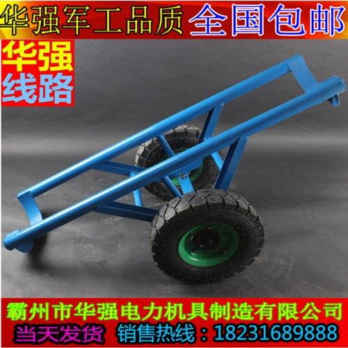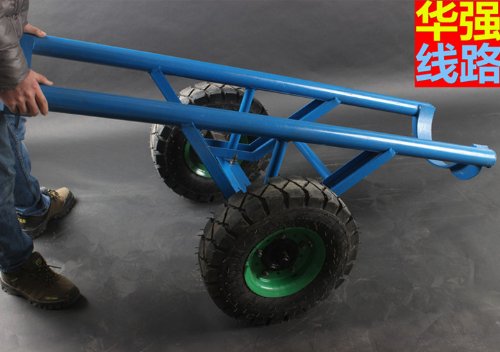 用途:用于在便道上运输混凝土杆,用上置式时混凝土杆置于车架上方,用下置式时混凝土杆通过两个手拉