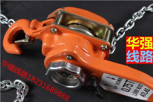 是通过人力扳动手柄借助杠杆原理获得与负载相匹配的直线牵引力,轮换地作用于机芯内负载的一个钳体,带动负载运行。它具有结构紧凑、重量轻、外形尺寸小、携带方便省力、安全可靠、使用寿命长、手扳力小、对