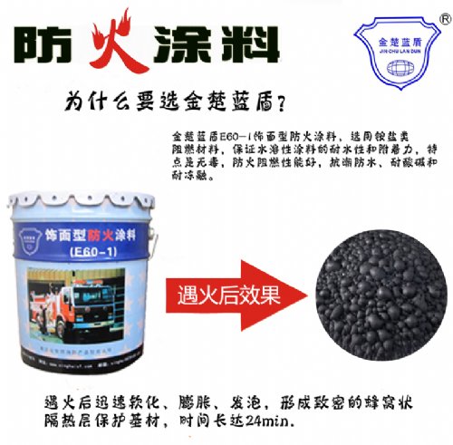 由多种高效阻燃材料和高强度的成膜物质组成,遇火后迅速软化、膨胀、发泡,形成致密的蜂窝状隔热层,具有较强的阻火隔热功能,对基材起到很好的保护作用。其优点在于*,无环境污染,防火,阻燃性能好,又具有很强的附着力和一定的抗潮、防水、耐酸碱和耐冻融等特性。并可根据用户需要调配多种颜色,具有良好的装饰效果是一种安全、卫生、环保的绿色建筑装饰防火涂料。