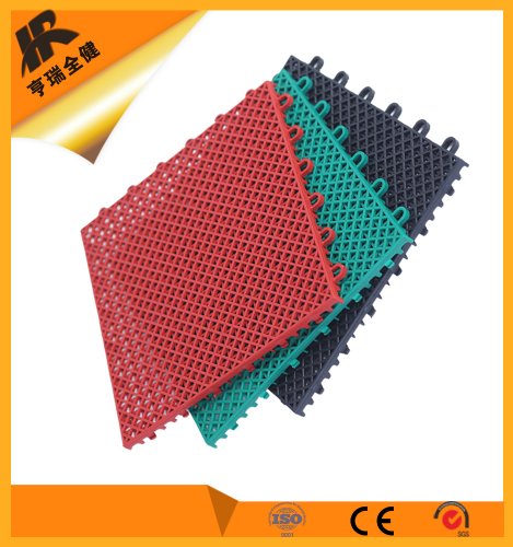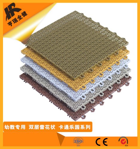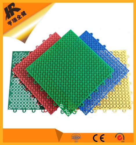 体育运动地板的运动场地面层材料,成品为块状,规格为30.48cm×30.48cm×1.6cm,可直接铺装在水泥或沥青的基础表面,无需粘接,每一块地板之间用独特的锁扣进行连接,安装十分的简单,还可以随意拆卸。