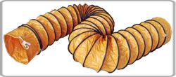 由塑料胶骨包裹钢线为骨架,以桔黄色尼龙夹网布为管身,管身处每隔一米有一金属吊环,可方便固定风管,产品伸缩弯转、驳接自由、体积轻巧、耐高温.耐磨.耐压、耐酸碱且阻燃、绝缘。配合