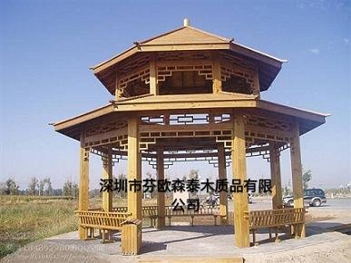 龙威志防腐木凉亭、园林廊架,仿古木结构建筑多规格可来图定制