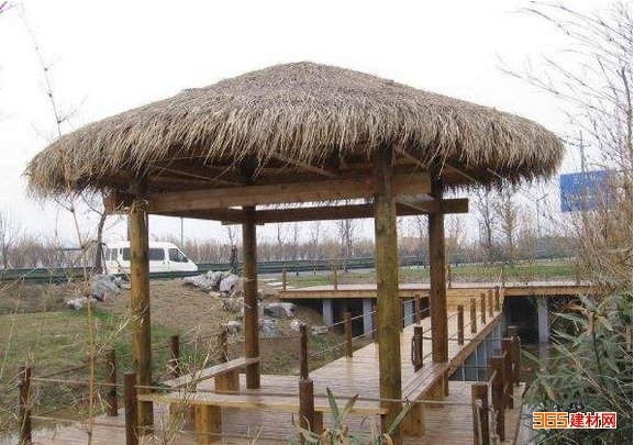 在木结构上安装天然茅草,建议在屋顶上做防水处理,用防水油毡/SBS粘在木结构屋顶上,