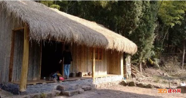 3、屋顶屋脊的铺装:将天然茅草编织片裁剪成300-500mm/片(裁片的时候只要把竹片裁断即可不裁断麻绳)中点定在屋脊,将其把两边的竹片固定在屋面即可。若有圆柱形屋顶,则可将竹片从茅草编织片中抽出然后沿圆柱体外面捆绑即可。