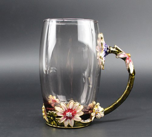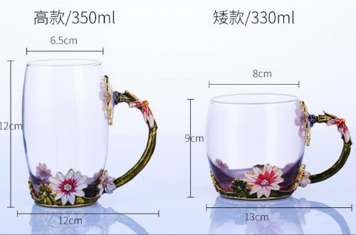 创意珐琅彩水杯玻璃花茶杯,定制礼品玻璃杯子雏菊款