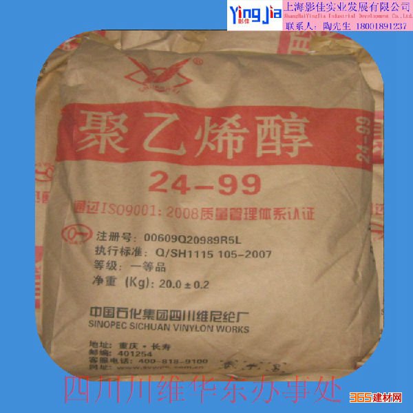 外墙涂料、粉饰加工、嵌缝等。PVA涂料具有良好的耐候性、防水性、遇水不膨胀、不脆化、*无味、且价格低廉等有点。适用影佳实业公司牌号有聚乙烯醇PVA 100-27、100-35、098-30、098-60、100-78等