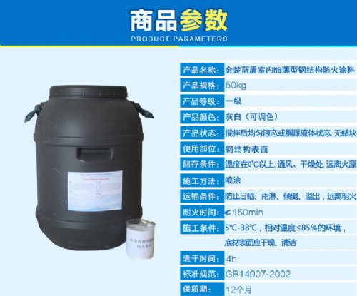 钢结构防火涂料,涂刷于钢构件表面,遇火时涂层膨胀发泡形成炭化耐火隔热保护层,隔绝氧气,延滞钢结构受热的速度,避免钢构件快速升温,从而提高钢结构的耐火时限。该产品可满足耐火极限为0.5h~2.5h防火保护的要求,适用于建筑设计防火为一级耐火等级中支承单层的柱、梁、屋顶承重构件以及疏散楼梯等;二~四级耐火等级中支承单层和多层的柱、梁、屋顶承重构件以及疏散楼梯等的钢结构构件。符合GB 14907—2002国家标准的技术指标。