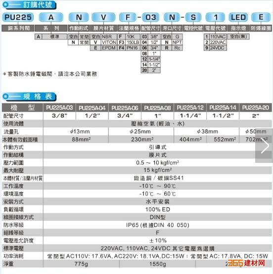 PU225引导式225系列:PU225-03A、PU225-04A、PU225-06A、PU225-08A、PU225-12A、PU225-14A ,SUW-10,SUW-15,SUW-20,SUW-25,SUW-35,SUW-40,SUW-50(chelic),2W150-15,2W200-20,2W250-25,2S150-15,2S200-20,2S250-25,2S320-32,2S400-40,2S500-50