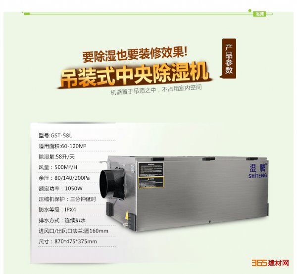 湿腾吊装式中央管道除湿机,超轻潮薄设计,机器置于吊顶中,不占用室内面积,不影响室内