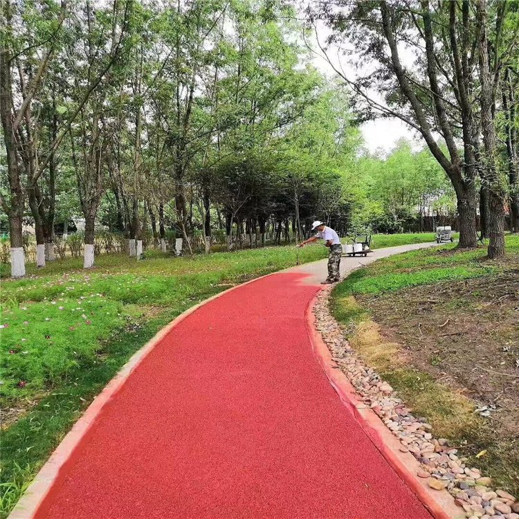 透水路面的铺装彩色混凝土透水路面的施工,需要考虑地形、载荷、景观要求、施工条件等各类因素,除了要选择彩色组合和结构形式 以外,还要根据现场载荷情况、功能要求,做好经济、合理、适用,即选择相应等级的混凝土、面层厚度、基层结构、面层结构。彩色混凝土透水路面的面层结构分为单色面层及彩色与素色进行双色组合面层,使用双色组合面层的时候,彩色面层厚度要保持在30m以上。对于轻载车道或停车场等道路混凝土面层要保持在l OOm/b[上,才能更好的保证道路稳定性、实用性。在综合考虑混凝土结构的情况下,可适 当调整面层厚度,但总体来说不能低于70too。因此,在考虑彩色混凝土透水路面经济性、适用性,及其使用场景的基础上,需要重点关注混凝土结构厚度及硬度等级两方面的内容。 2)基层结构。彩色混凝土透水路面质量与基层关系密切,由于其透水性,地表水会直接通过混凝土路面渗透到基层,造成基层不稳问题,而基层不稳就会破坏路面,所以,现场施工过程中需要根据路面使用要求选择满足渗流条件、承载能力的结构层。对于人行道、园林道路等要满足人行需求,同时考虑生态因素,可以使用全透水层结构,基层由素土层夯实,再铺设级配碎石或